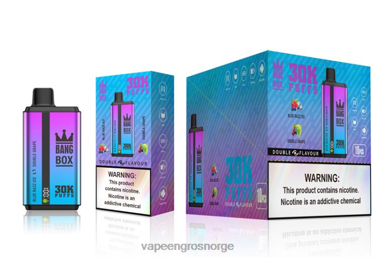 Vape Engangsbruk – Bang Box 30000 puff doble smaker blå razz is og dobbel drue 60X4L72