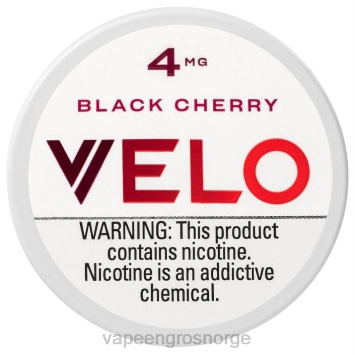 velo black kirsebær 4mg nikotinposer – hver boks inneholder 20 tobakksbladfrie nikotinposer som har smaken av søte og syrlige sorte kirsebær. disse posene fra velo tilbyr et alternativ til tradisjonelle munntobakksprodukter.
